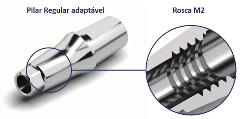 Todos os pilares Cone Morse da Medens utilizam parafusos passantes M1.6. Em seu interior uma rosca M2, que acionada pelo parafuso saca pilar permite a remoção do pilar de seu encaixe no implante.