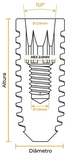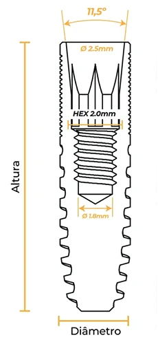 Os implantes HIS CM (Cone Morse) da linhja Standard sâo cortantes e compactantes devido ao seu perfil externo.