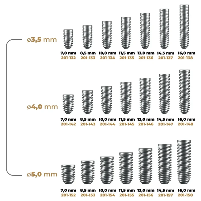 Confeccionados em LIGA CONFORMADA DE TITÂNIO GRAU 5, conforme norma ASTM f-136